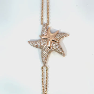 Handcrafted in 18K rose gold, it features two superposed starfish, the larger one shimmering with 232 white diamonds (0.52 ct, Color F, VS1).